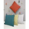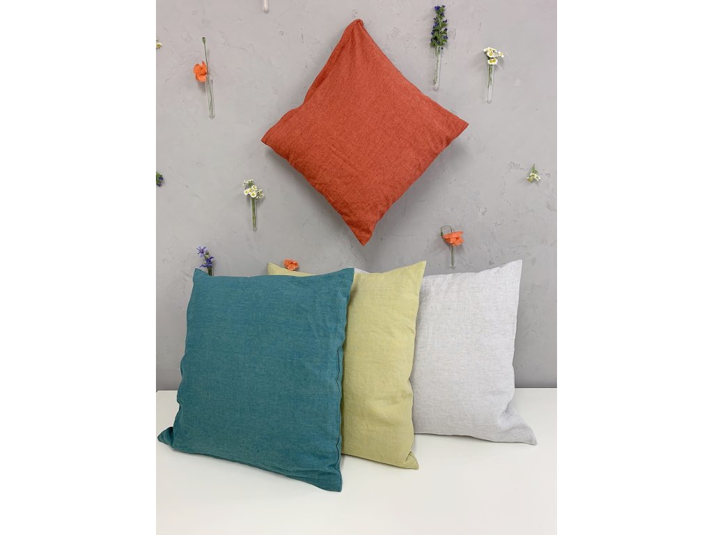 Materiálem je pevný 100% len s vysokou gramáži, ještě vyšší než používáme na klasické povlečení. Proto se ideálně hodí na pohovku v obývacím pokoji. Látky jsou luxusní a působí tak i na první dojem. Většina barev je protkávána více barvami nití, to má za výsledek krásné odlesky finální barvy.